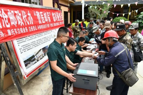 郵路通達抵邊村,便民服務也隨之深入抵邊村。2023年7月,瀾滄縣郵政分公司與當地交管部門聯合啟動“警醫(yī)郵保”項目,在抵邊村設置臨時服務點,為村民們現場辦理摩托車滅失注銷登記、保險繳納、車輛免檢、證照檢審等業(yè)務,獲得了村民們的熱烈歡迎和一致好評。