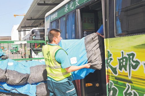 “每輛公交車的后邊都單獨隔開了一個郵件專門存放區,由郵政工作人員將郵件裝車碼放好,我們駕駛員是沒有鑰匙的。運送到目的地后,由站點的工作人員負責開門卸貨,保證了所有郵件的安全。”4月9日下午1點半,在高鐵亳州南站附近的亳州郵件處理中心,正在等候即將送往沙土鎮的快件裝車的公交沙土線駕駛員侯金濤說,“公交車上還有多角度全程錄像,可以保證包裹不丟失、不損壞。公交車一天運送兩次包裹,從鄉鎮返回時,我將需要郵寄的郵件運送到市區的郵政郵件處理中心。”