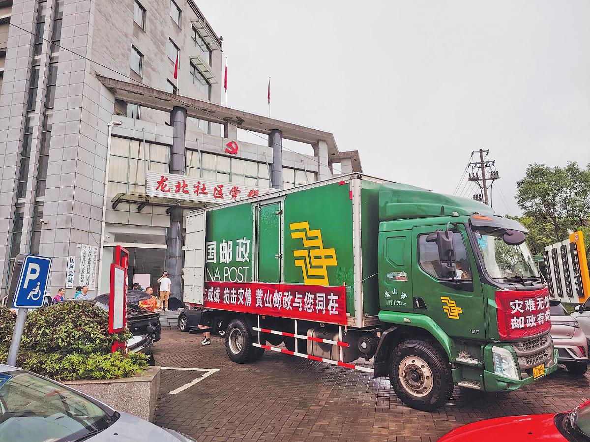一方有難,八方支援。在全力做好郵政自身防汛救災、保障通信暢通的同時,黃山市分公司還積極響應政府號召,抽調車輛、人員協助政府部門進行救災。郵政黨員干部沖鋒在前,第一時間前往受災街道、受災小區進行重要物資轉移,在交通要道引導過往車輛,到包保小區進行環境衛生清理工作等。