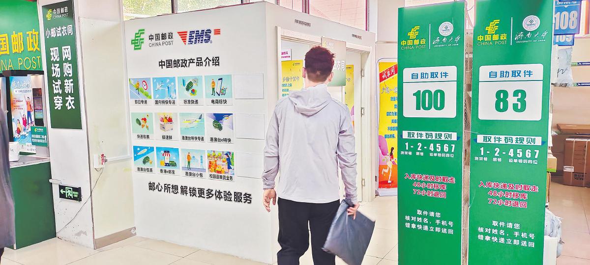 濟南大學郵政驛站“小郵試衣間”?!鯇O明輝 攝