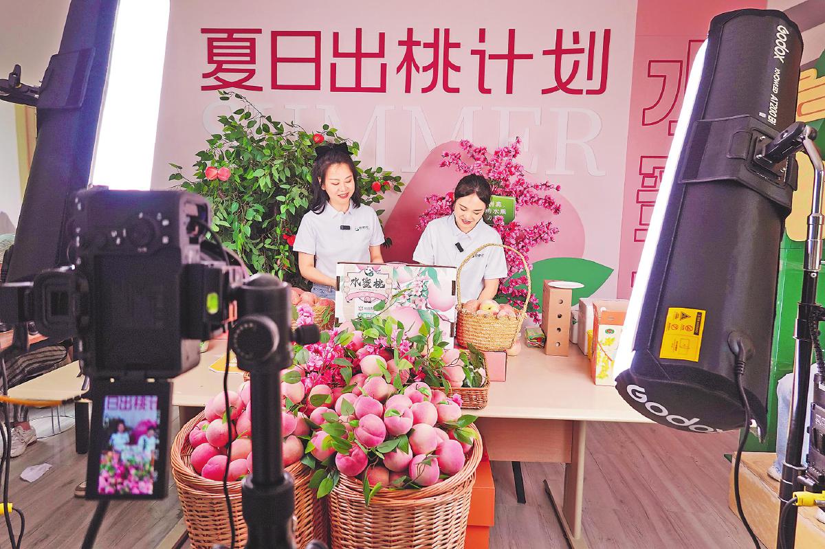 龍泉驛水蜜桃郵政溯源直播,送出夏日甜蜜。□黃麗云 攝