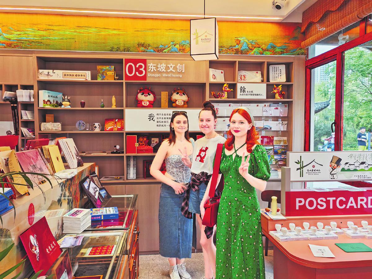 8月14日,“一帶一路”項目建設(shè)合作跨國圓桌會組委會原秘書長邢軍、部分外國友人和機(jī)構(gòu)代表參觀訪問湖北省黃岡市黃州區(qū),黃州東坡郵局被列為參觀重點之一。走進(jìn)東坡郵局,考察團(tuán)成員先后參觀了東坡紀(jì)念郵票展示區(qū)、東坡文化主題文創(chuàng)展示區(qū)、東坡詩詞圖書展示區(qū)、書寫集戳區(qū)、咖啡飲品區(qū)、直播帶貨區(qū)、婚慶禮品區(qū)。大家駐足欣賞墻面上東坡與黃州、東坡與中國、東坡與世界文化故事的詩詞書畫,興趣極濃地挑選、翻看各種精美的文創(chuàng)產(chǎn)品,詢問郵品開發(fā)情況,并相繼購買,還蓋上東坡郵局紀(jì)念郵戳。圖為漂亮的俄羅斯小姐姐在東坡文創(chuàng)區(qū)拍照打卡。