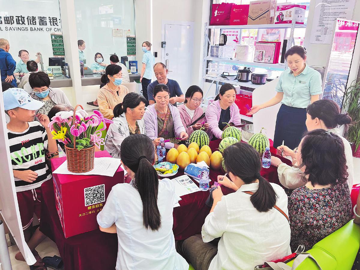 “大家掃這個碼,就可以進團購群參加活動!”8月22日,江蘇省常州市郵政分公司薛家支局啟動“萬點同慶”郵政農品地推活動,吸引“郵樂小店”團購群成員到店296人,發放金融宣傳折頁禮品券200余份,現場銷售“郵樂優鮮”自提商品41單……“919”郵政農品節期間,常州郵政提前布局,結合本地優勢建設培育“網點助農團購群”,搭載“生態金融”場景,豐富引流活動方案。截至8月底,常州郵政已有73個網點成功開展“萬點同慶”活動,其中36個網點開展活動超過3場。