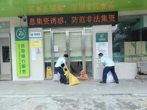 郵政人員在臺(tái)風(fēng)前做好網(wǎng)點(diǎn)防范工作