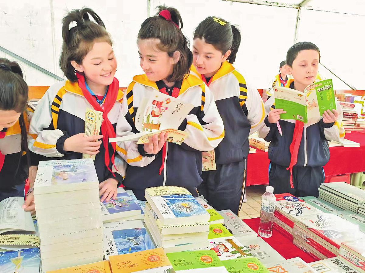 近日,由新疆維吾爾自治區喀什市委宣傳部、市教育局牽頭,喀什地區郵政分公司承辦的“閱讀新時代·喀什向未來”圖書贈閱惠民活動啟動儀式在喀什市第十一小學舉行??κ驳貐^分公司捐贈了價值6萬元的圖書和價值80萬元的圖書優惠券,并現場進行圖書展銷,進一步豐富學校圖書閱覽室藏書,培養學生良好的閱讀習慣,讓他們在讀書中獲得更多知識,健康快樂地成長。圖為喀什市第十一小學的學生徜徉在書海中。