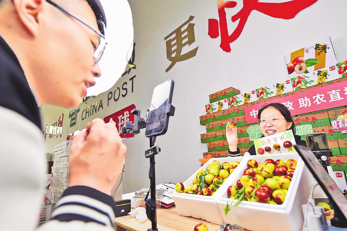 10月16日,山東省濱州市郵政分公司直播團(tuán)隊(duì)來(lái)到沾化區(qū)下洼鎮(zhèn)大下洼村開(kāi)展助農(nóng)直播,銷(xiāo)售冬棗近3000單。自9月沾化冬棗上市以來(lái),濱州郵政直播團(tuán)隊(duì)深入棗園、倉(cāng)庫(kù)開(kāi)展實(shí)地直播300余場(chǎng),助力棗農(nóng)銷(xiāo)售冬棗50萬(wàn)余斤。同時(shí),他們聯(lián)合下洼鎮(zhèn)政府推出“鎮(zhèn)長(zhǎng)帶您郵棗鄉(xiāng)”系列視頻宣傳,助力打造沾化冬棗品牌,帶動(dòng)鄉(xiāng)村旅游建設(shè),受到當(dāng)?shù)卣暮迷u(píng)。