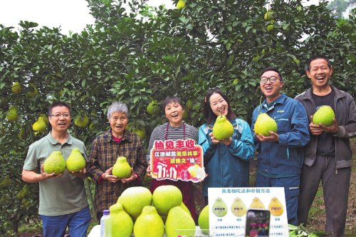 江津郵政與果農一起直播帶貨,共迎柚子豐收。