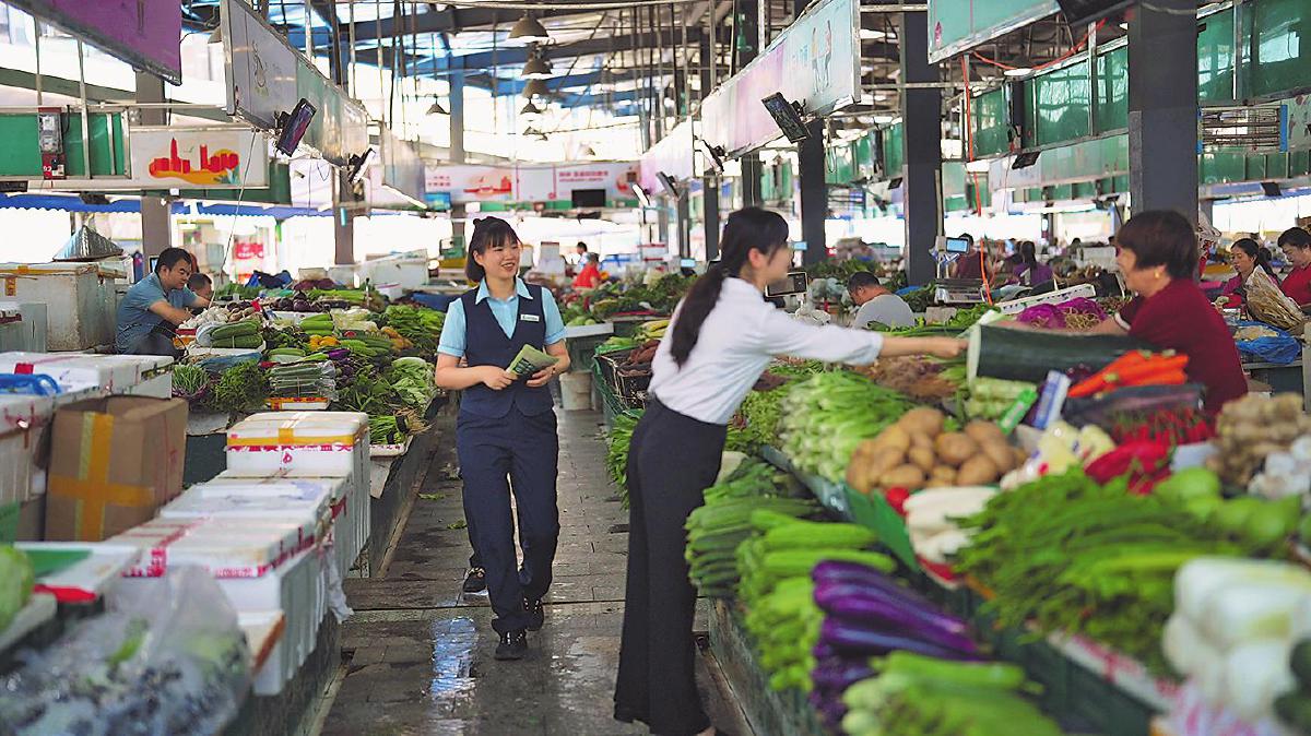 上午9點,陽光透過市場的棚頂,斑駁地灑落在濕漉漉的地面上,空氣中彌漫著新鮮蔬菜和水果的香氣。在廣東省深圳市龍華區(qū)觀瀾綜合菜市場,人潮開始涌動,一座城市剛剛醒來。深圳市龍華區(qū)郵政分公司的“郵金智聯隊”成員手持宣傳單,向菜攤逐個推介著。