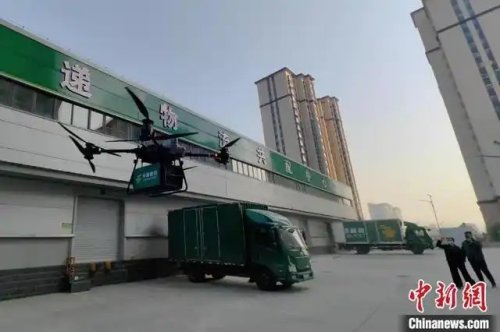 1月3日上午,一架無人機“郵遞員”滿載郵政快遞,從河南省安陽市林州郵政寄遞物流共配中心起飛,20分鐘后降落在林州石板巖鎮中心廣場。這是安陽市首次開展山區無人機郵政快遞航線測試飛行。