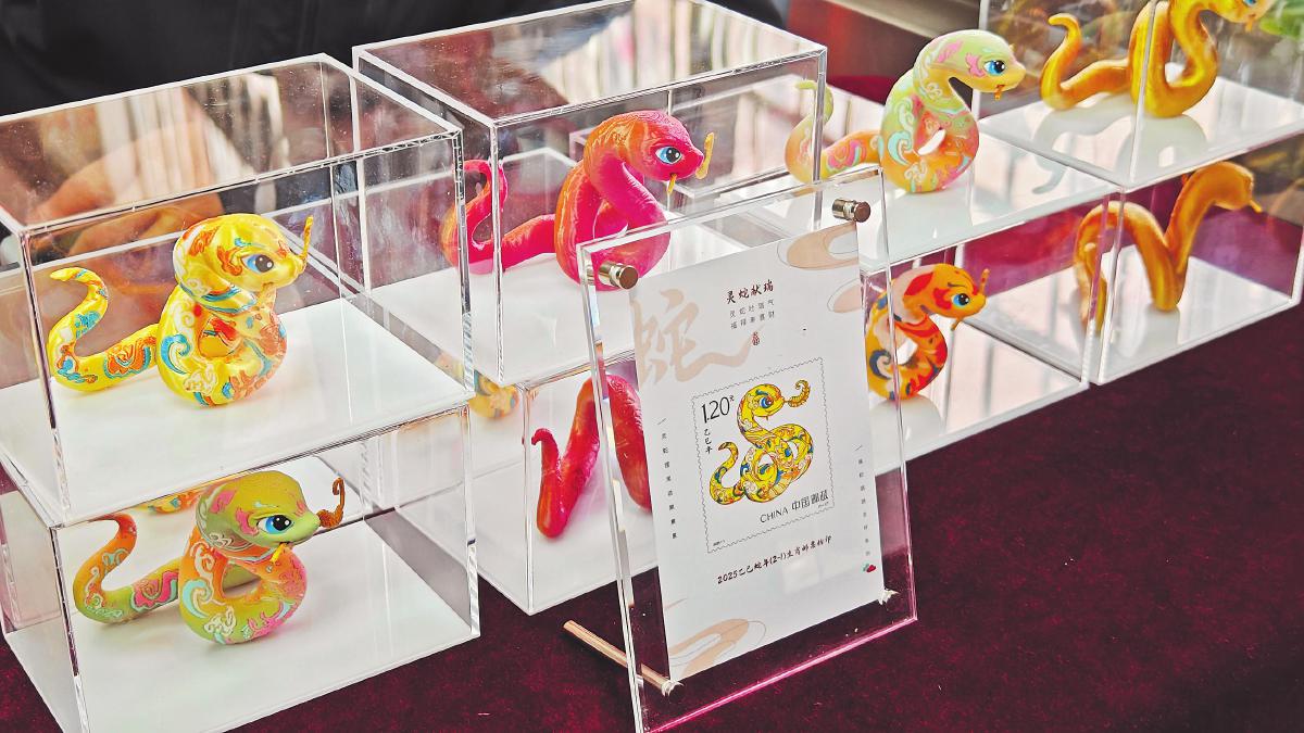 浙江省寧波市郵政分公司將生肖蛇形象以3D打印方式制作成文創(chuàng)產(chǎn)品,引發(fā)郵迷關(guān)注。□周蕾 攝