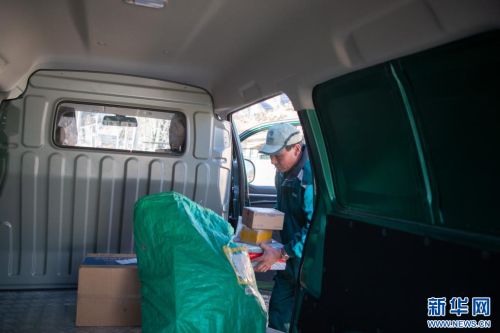 1月19日,在林芝鎮(zhèn)郵政所,郵遞員索朗次仁把準備派送的快遞裝車。
