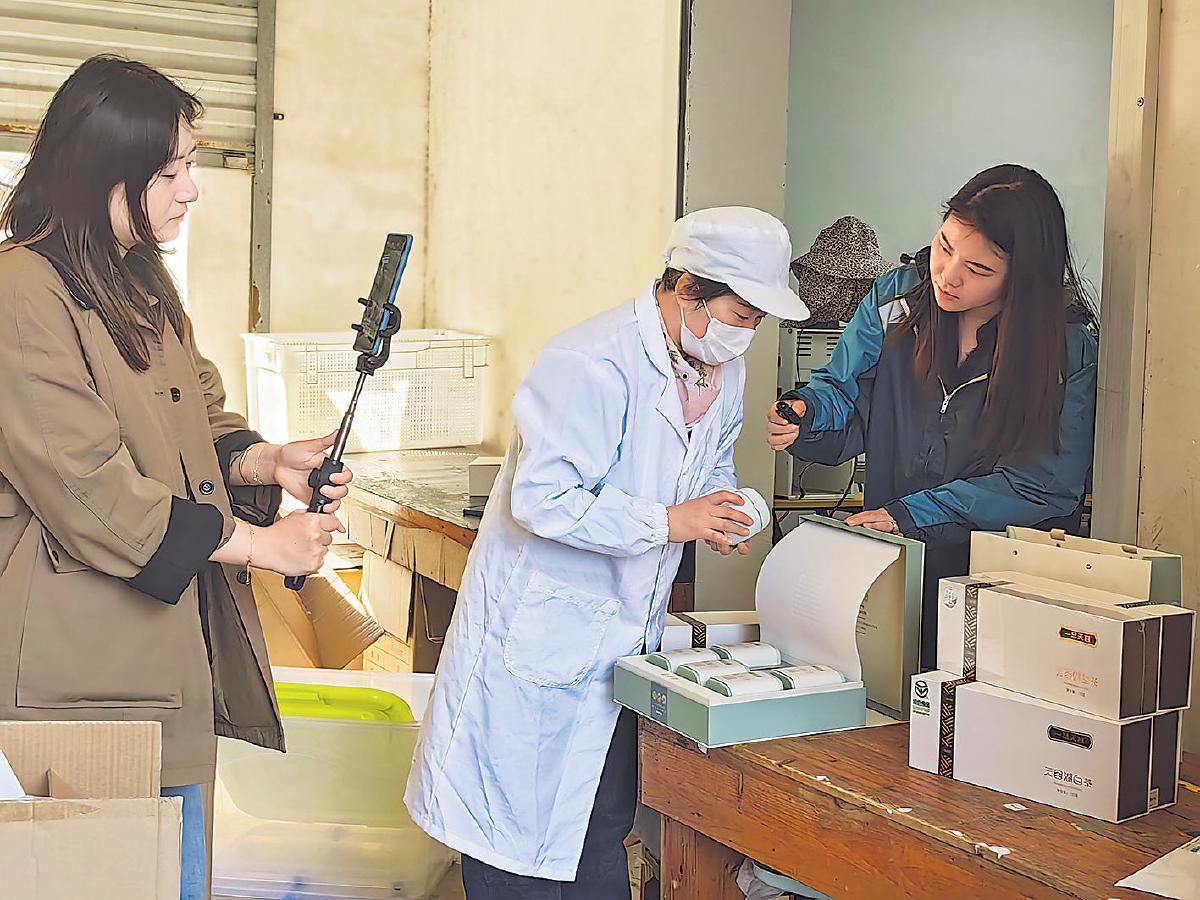 “她”力量是腳踏實地走好每一步。史秋蓉(右)是江蘇省溧陽市郵政分公司農(nóng)產(chǎn)品助銷選品員。陽春三月,溧陽春茶吐翠,史秋蓉和同事一起走進茶企,實地考察茶葉生態(tài)種植環(huán)境,免費幫助茶場拍攝展示茶葉采摘、制作、包裝等全流程的宣傳視頻,擴大春茶宣傳面,助力溧陽春茶“走出去”。□查葉娟 攝影報道