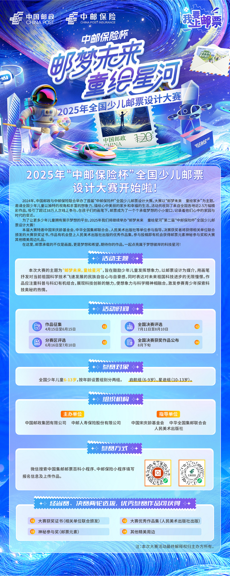 關(guān)于開展2025年“中郵保險(xiǎn)杯”全國少兒郵票設(shè)計(jì)大賽活動(dòng)的公告