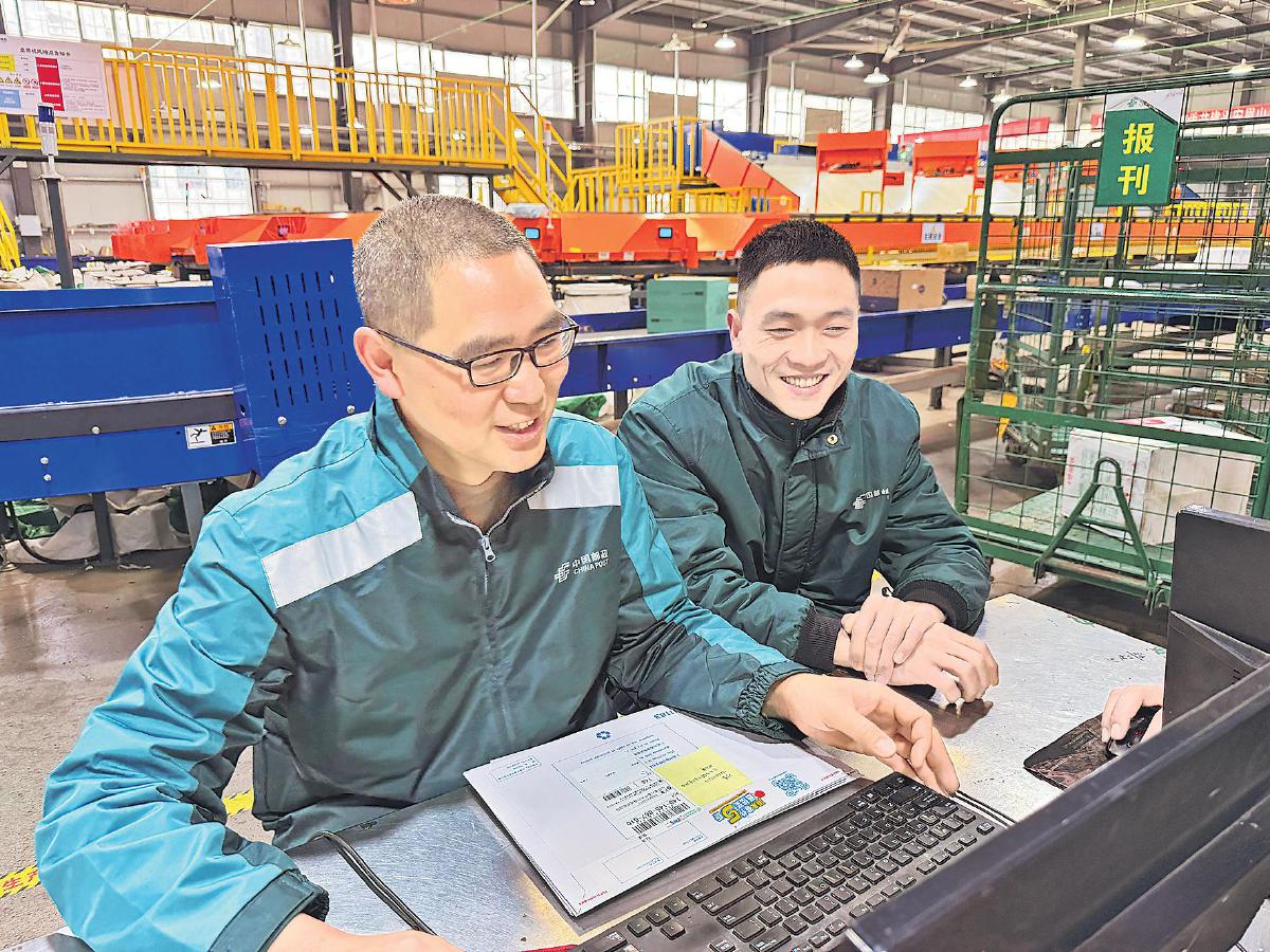 為驗(yàn)證想法的可行性,邱文波利用休息時(shí)間和同事一起調(diào)整傳送帶的分發(fā)程序設(shè)置,并在傳送帶兩側(cè)設(shè)置分揀區(qū)域,一邊是城區(qū)郵件分揀區(qū),另一邊是鄉(xiāng)鎮(zhèn)郵件的暫存區(qū)。兩周后,原本需要5名分揀員協(xié)作的工作,3人即可完成,效率提升近40%。“以前分揀城區(qū)、鄉(xiāng)鎮(zhèn)的包裹需要很長(zhǎng)時(shí)間,現(xiàn)在重新調(diào)整了分揀流程,不僅分揀效率提高了,后續(xù)鄉(xiāng)郵封發(fā)組的工作也輕松了。”負(fù)責(zé)封發(fā)的何靜波感慨道。