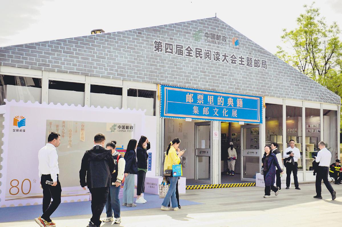4月23日至27日,由中央宣傳部和山西省委、省政府主辦的第四屆全民閱讀大會在太原舉辦。山西省郵政分公司舉辦了《郵票里的典籍》專題集郵文化展覽,并啟用“第四屆全民閱讀大會”文化日戳1枚。太原市郵政分公司在活動現(xiàn)場設(shè)立臨時(shí)主題郵局,集中展示各類暢銷報(bào)刊及集郵文創(chuàng)產(chǎn)品,并免費(fèi)提供“第四屆全民閱讀大會”文化日戳和幾十枚地方名勝風(fēng)光打卡章戳的加蓋服務(wù)?!跷鋪喠痢⊥蹩∏濉罴巍z影報(bào)道