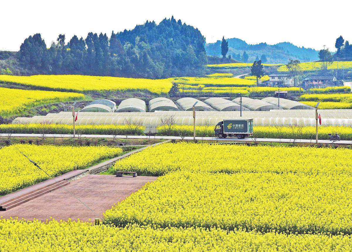 郵車暢行于沃野阡陌,承載著鄉村振興的希望。 □曾祥文 攝