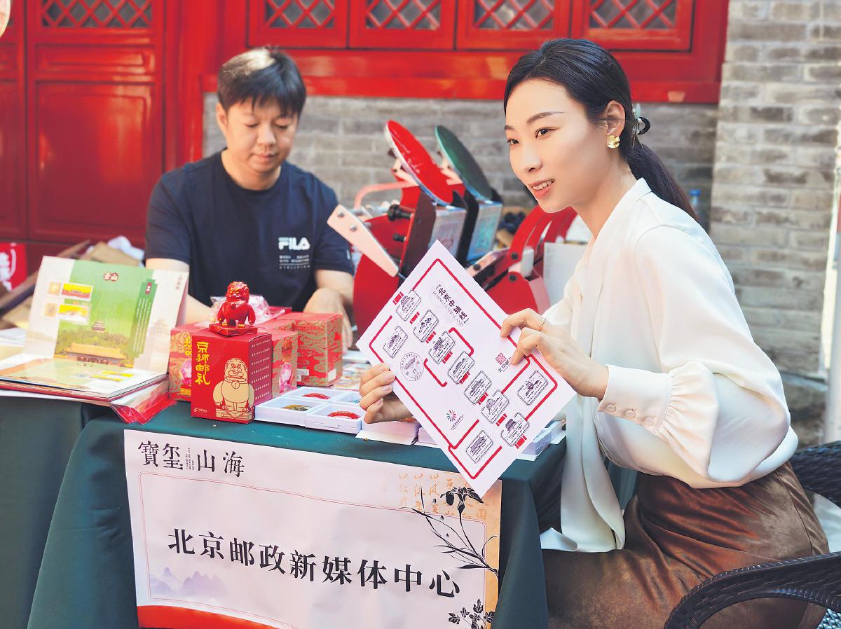 5月14日至25日,位于北京故宮—景山文化中軸線核心區(qū)的北京金石博物館推出“寶璽山海”主題文創(chuàng)市集,北京市郵政分公司攜主題文創(chuàng)、明信片凸版印刷設(shè)備及郵政特色章戳亮相。
