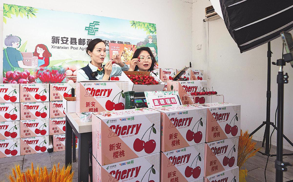 洛陽郵政直播團隊助銷新鮮櫻桃。