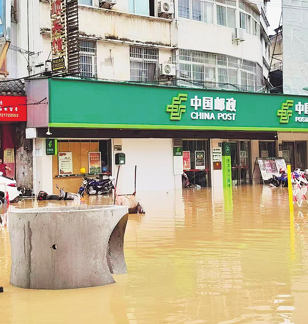 洪水漫進(jìn)榕江縣古州北路營(yíng)業(yè)所。