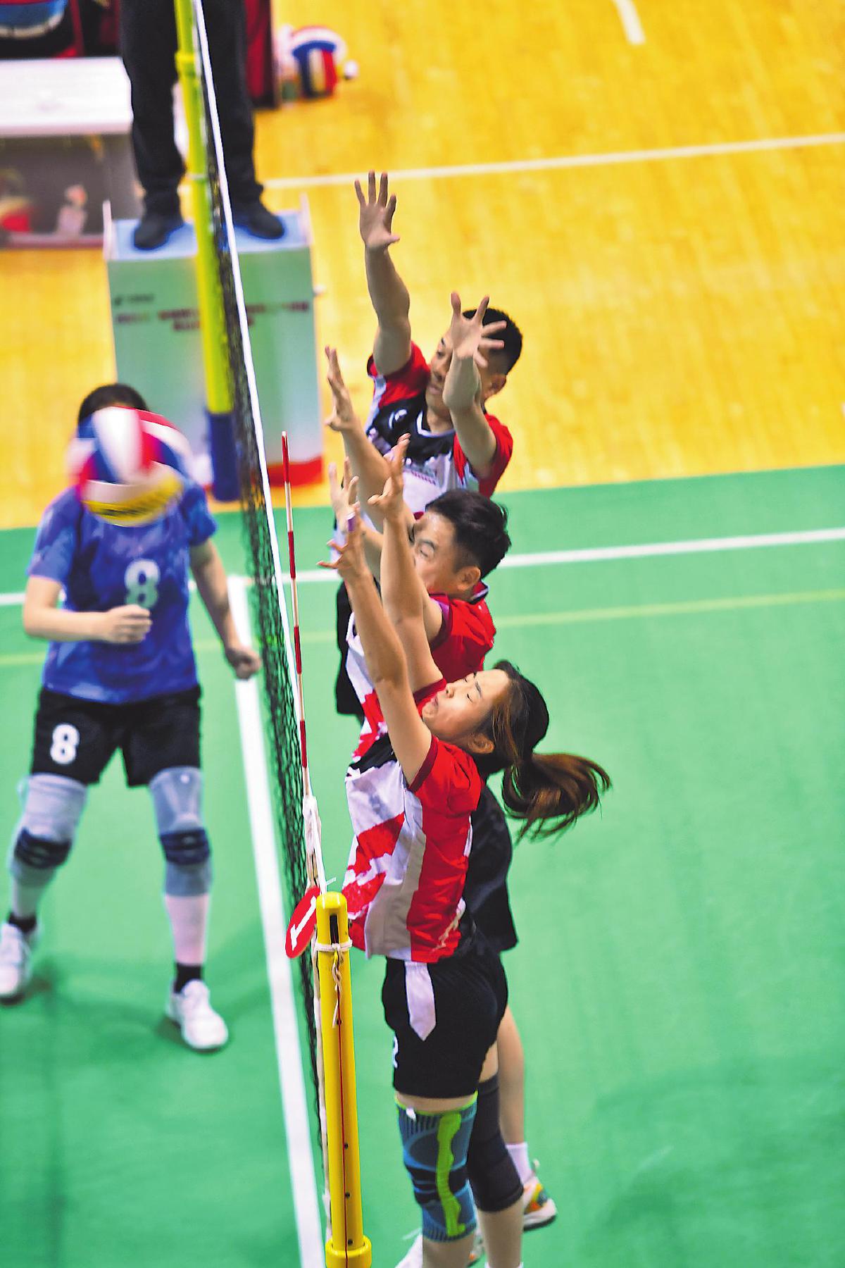 雖然扣球來勢洶洶,但絕不讓它輕易穿透我們的防守。