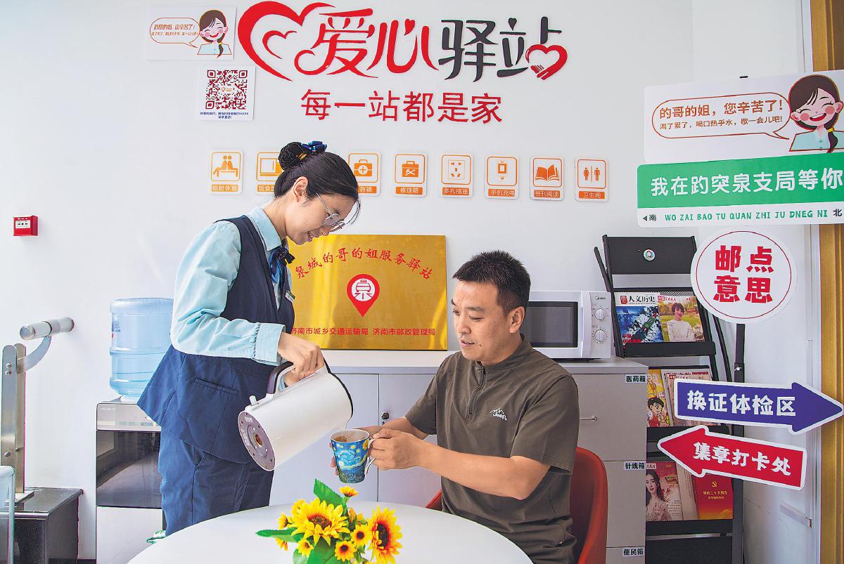 7月4日,山東省濟南市首批10個“泉城的哥的姐服務驛站”在郵政網點投入運營。該批服務驛站由濟南市郵政分公司、市城鄉交通運輸局與市郵政管理局聯合打造,為出租車司機提供飲水休息、飯菜加熱等10余項便民服務。目前,10個服務驛站位置已在高德地圖標注,方便司機隨時查找。據悉,服務驛站將逐步覆蓋全市郵政網點,未來還將新增證件到期提醒、車輛保險咨詢等延伸服務,打造多功能便民服務平臺。