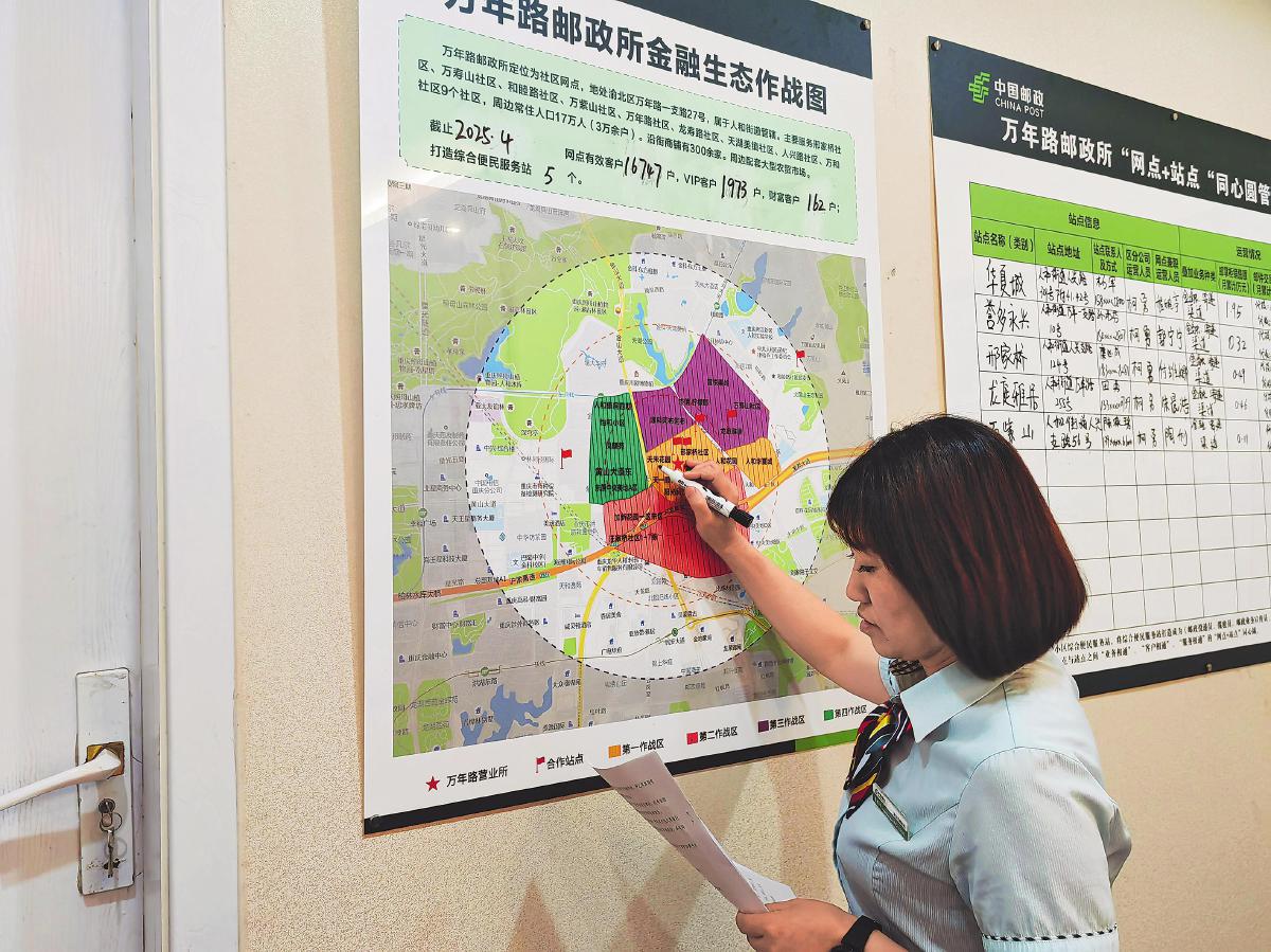 渝北區(qū)萬年路郵政所負責人在“同心圓”管理看板上更新業(yè)績。