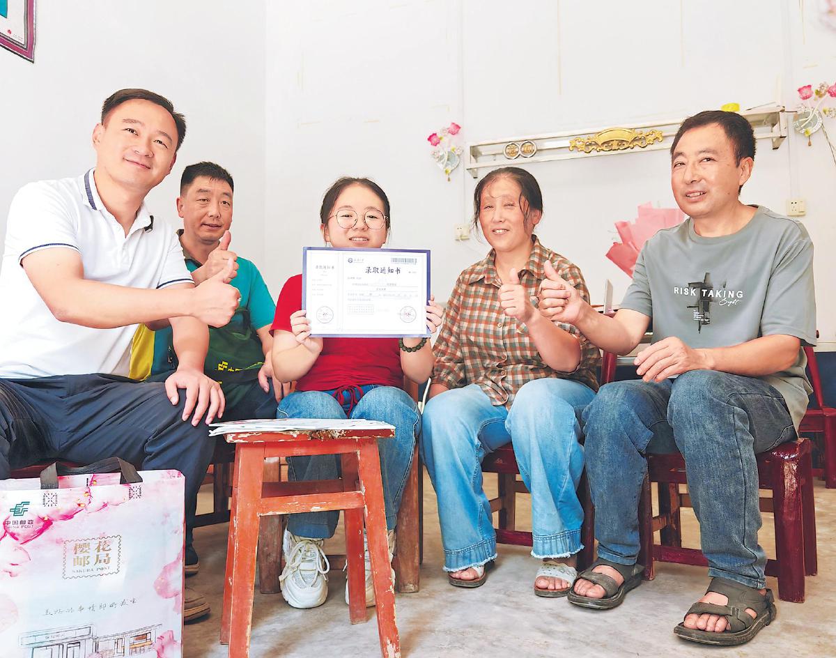 其實(shí),郵車引擎聲剛靜下,民居的主人田艷青就和父母從屋里笑著迎了出來(lái)。按照流程完成簽收后,曾經(jīng)為田艷青打造了“一個(gè)人的小學(xué)”的支教老師袁輝從人群中驚喜現(xiàn)身。“袁老師!”現(xiàn)場(chǎng)響起激動(dòng)的輕呼,田艷青當(dāng)即邀請(qǐng)?jiān)x與她一起拆開錄取通知書郵件。一側(cè),看著這個(gè)場(chǎng)景的田艷青母親嘴角漾著欣慰的笑容,透過(guò)她噙著淚水的雙眼,10余年的時(shí)光似乎交疊濃縮,2012年袁老師首次上門為青青授課的畫面正與眼前這一刻重合……