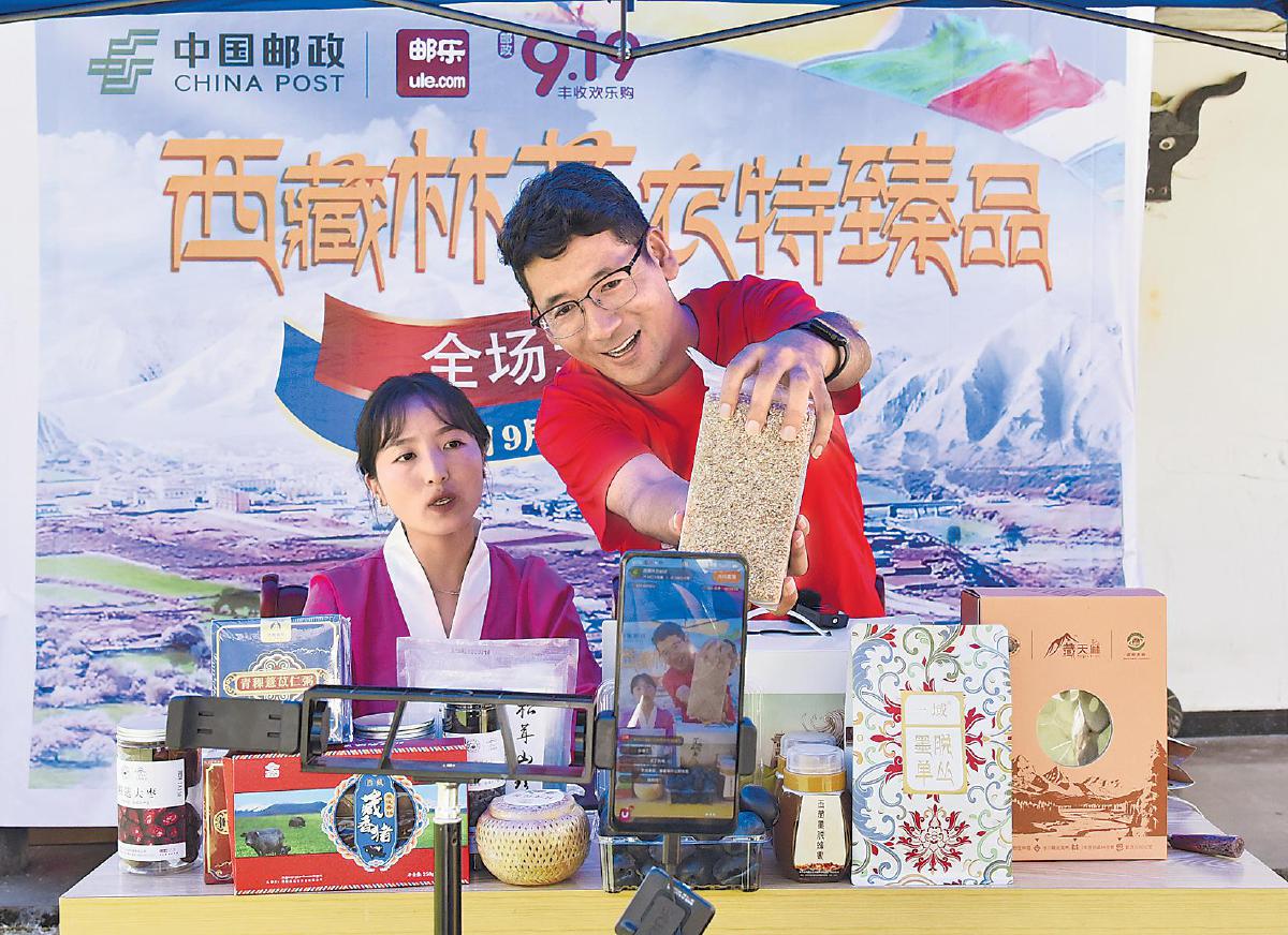 林芝市郵政分公司開展墨脫紅米等農特產品溯源直播,讓藏品“郵全國”。