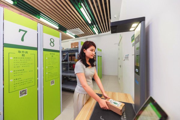 8月20日,在安徽省合肥市科大訊飛小鎮,客戶在郵政無人驛站掃碼領取郵件。