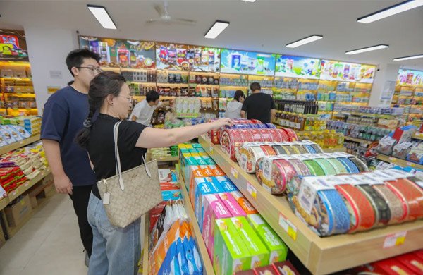 羅斯帝國商城金冠俄貨店里,產(chǎn)自俄羅斯的巧克力、餅干、糖果、香腸、果凍、蜂蜜、酒水等產(chǎn)品琳瑯滿目,前來零購、進貨、選品的客戶絡繹不絕。