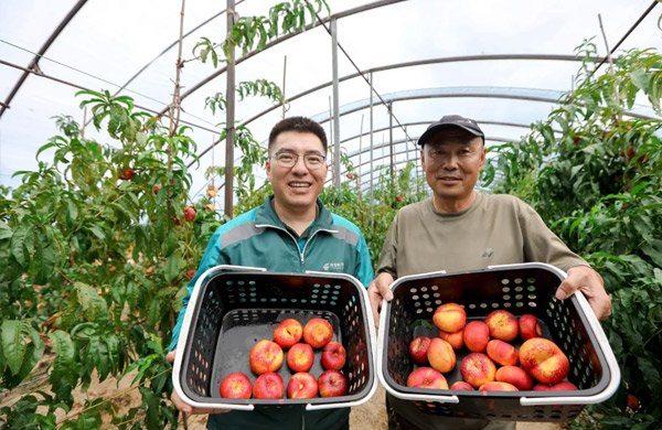 金銀庫村榛林湖采摘園里,蟠桃、黃桃、沙果等水果掛滿枝頭,在陽光的照耀下,折射出誘人的光芒。負責人張文錫對郵政滿是感激:“郵政給我提供了收款碼、打包郵寄、直播銷售、包裹投遞、存款等‘一條龍’服務,讓我的日子越來越好、越來越方便。”