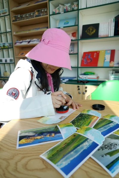 廣東省梅州市游客李女士說(shuō):‘馬上’郵局很有特色,還有一個(gè)網(wǎng)紅墻可以拍照,隨意凹造型。平時(shí)我也會(huì)去景點(diǎn)購(gòu)買(mǎi)明信片、冰箱貼當(dāng)做伴手禮,我要把我手里的明信片郵寄給朋友。