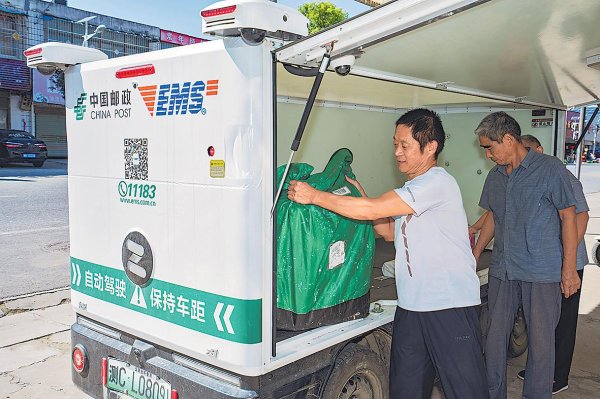 10點整,隨著電機嗡鳴聲從村口傳來,當天首趟無人車穩穩地停在厚坡鎮韋集村便民服務站門口。便民服務站老板孫均波已在門口等候,見車停下,他腳步輕快地迎上去,用手機一掃描,隨著清脆的“咔嗒”聲,無人車柜門彈開。他把郵件取出來,說:“以前在電視里見過這高科技,做夢也沒想到無人車能開到俺村來!這小車可機靈了,遇到行人會自動避讓,到了村口還會播報取件信息。”