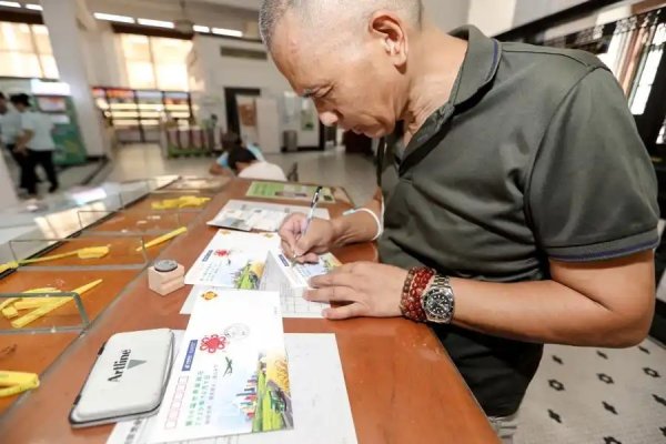 最受矚目的環(huán)節(jié),莫過于第56屆世界郵政日紀念封的首發(fā)。紀念封剛一亮相,便吸引了大批市民駐足圍觀,大家自覺排成整齊的隊伍,有序等待領取;拿到紀念封后,又紛紛走向紀念郵戳區(qū),小心翼翼地為封片蓋上專屬印記,每一個動作都透著對集郵的珍視。
