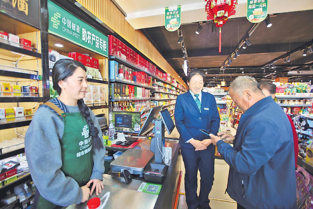 五原縣郵政分公司在“雙生態圈”打造中,攜手縣工業和信息化局,深度融入縣域商業體系建設項目,爭取政府補貼資金,選取全縣11個鄉鎮的11處商超,全部升級改造為郵政標準化綜合便民服務站點。采訪組在銀定圖鎮福多樂天天惠超市看到,面積達425平方米的超市寬敞明亮、顧客盈門,貨品琳瑯滿目,“天天3·15 放心郵樂購”的標志醒目,快遞存放處擺滿了待取的包裹。“環境好、人氣旺,營收比改造前增加了近三成。”超市老板李浩喜笑顏開,特意將采訪組領到新建的冷庫。冷庫里擺滿了牛羊肉等生鮮產品,他說再也不用為存放問題發愁了,村民隨時需要,自己隨時有貨。