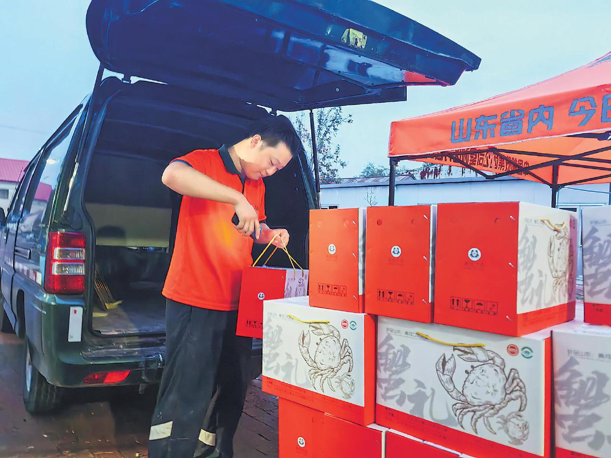 精心包裝的大閘蟹通過郵政渠道運往全國各地。