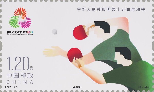 第十五屆全運(yùn)會(huì)是粵港澳三地承辦的我國規(guī)模最大、水平最高、影響最廣的綜合性運(yùn)動(dòng)會(huì),也是香港、澳門首次承辦全國運(yùn)動(dòng)會(huì)。該套郵票由內(nèi)地、港、澳三地設(shè)計(jì)師韓家英、陳幼堅(jiān)、歐俊軒設(shè)計(jì)。第1枚郵票表現(xiàn)內(nèi)容為花樣游泳,郵票圖案以躍動(dòng)的剪影表現(xiàn)運(yùn)動(dòng)員的優(yōu)雅身姿,力與美相生共舞,以獨(dú)特的視角展現(xiàn)出運(yùn)動(dòng)員在水中的靈動(dòng)瞬間。第2枚郵票表現(xiàn)內(nèi)容為擊劍,郵票圖案以飛動(dòng)的線條表現(xiàn)運(yùn)動(dòng)員迅猛矯健的身姿,剛與柔交織碰撞,以極簡的構(gòu)圖展現(xiàn)出運(yùn)動(dòng)員激烈的對(duì)抗場景。第3枚郵票表現(xiàn)內(nèi)容為乒乓球,郵票圖案以鮮明簡練的色塊表現(xiàn)運(yùn)動(dòng)員蓄勢(shì)待發(fā)的專注之姿,強(qiáng)與韌相融并濟(jì),以幾何化、概括化的現(xiàn)代極簡插畫造型,展現(xiàn)出運(yùn)動(dòng)員發(fā)球瞬間的氣勢(shì)和張力,營造出緊張的比賽氛圍。
