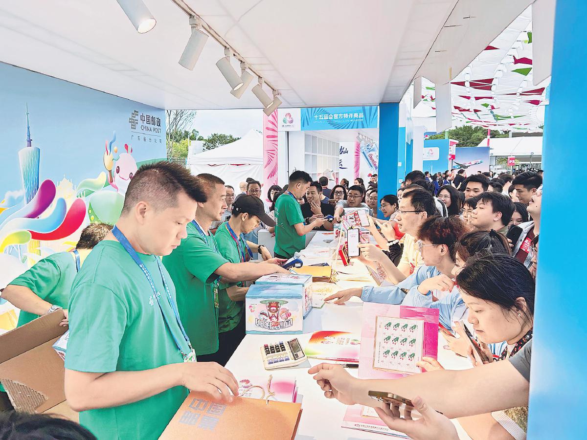 同時,廣東郵政針對賽事場館周邊、運動員酒店、新聞中心等重點區(qū)域提供優(yōu)先寄遞、上門取件等個性化服務,提升服務保障能力,切實滿足賽會期間的用郵需求。為確保服務品質,廣東郵政提前開展多輪專業(yè)培訓和實戰(zhàn)演練,確保服務團隊成員熟悉全運會相關知識和郵政各項業(yè)務。現場觀眾對郵政服務和產品給予高度評價。來自北京的觀眾張先生高興地說:“這些郵品設計精美,我特意選購了紀念郵折和首日封,要把全運會的精彩氛圍傳遞給親友。”廣州當地的李女士也贊嘆:“文創(chuàng)產品既有創(chuàng)意又富含意義,是見證這場盛事的珍貴紀念。”