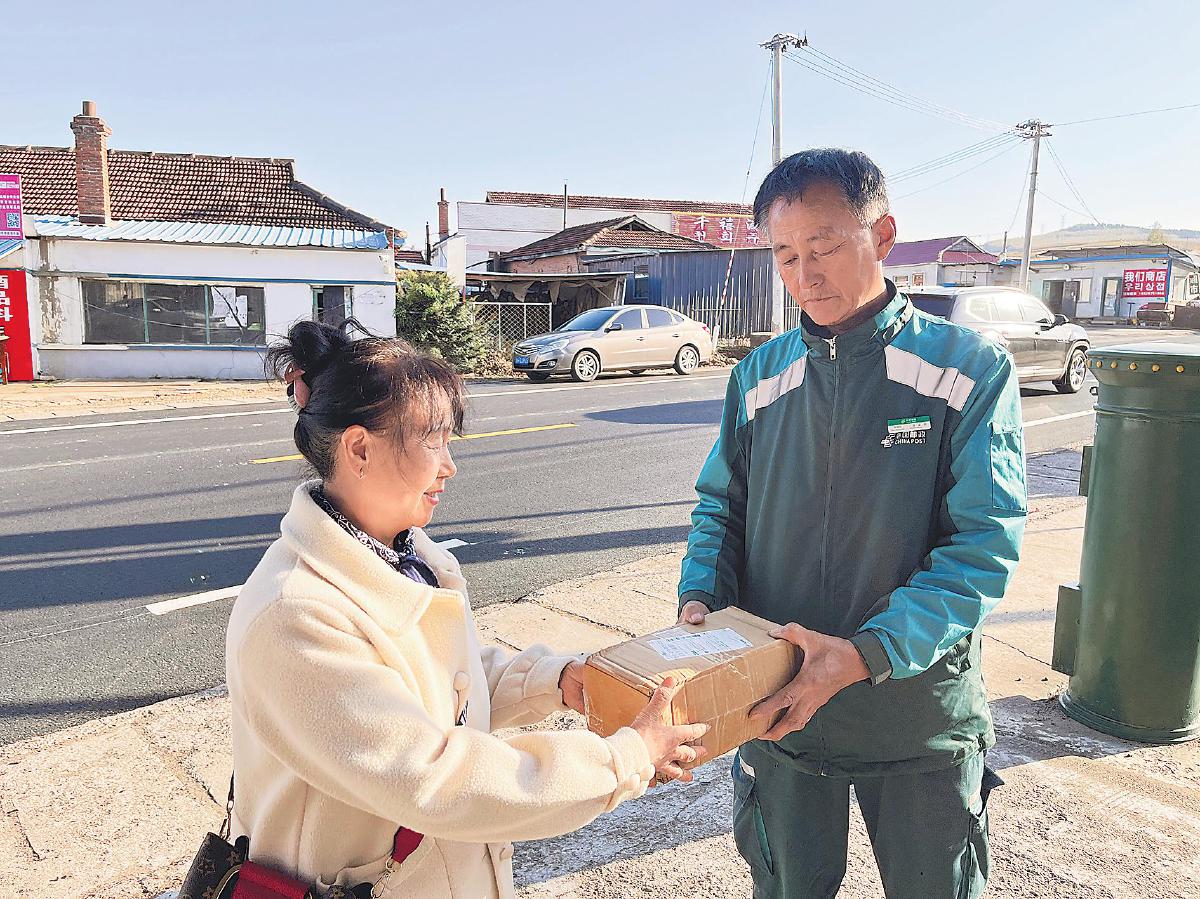 11月7日,吉林省圖們市長(zhǎng)安郵政支局鄉(xiāng)郵員李愛軍停穩(wěn)車,抱著快遞包裹大步走進(jìn)金大爺?shù)脑鹤印!按鬆敚畠航o您寄的生鮮到啦。‘雙11’快遞多,我給您先送過來。”每年“雙11”,都是李愛軍最忙的日子,日均投遞量比平時(shí)翻了近一倍,可他依舊做細(xì)服務(wù),哪怕繞點(diǎn)遠(yuǎn)路,也讓每一份期待都“準(zhǔn)時(shí)到家”。