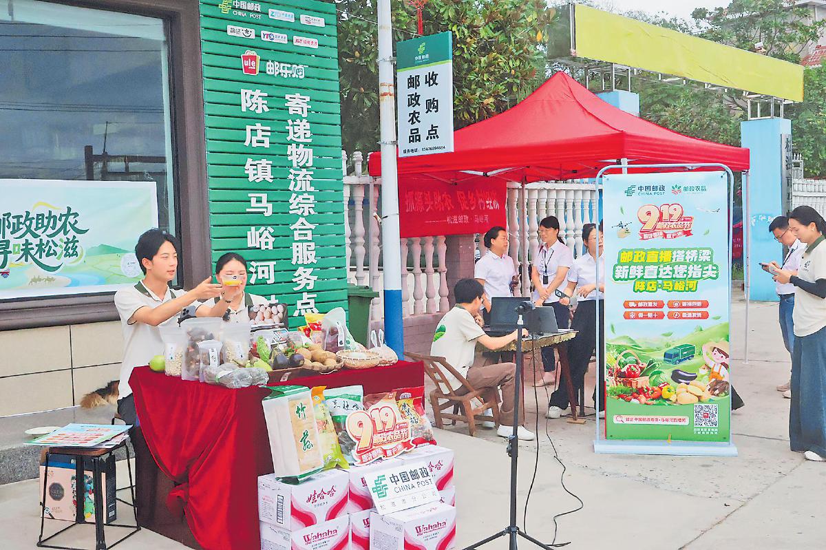 松滋郵政進村駐點開展直播,從源頭推介農產品。