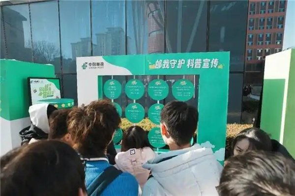 在 “郵我守護”宣傳科普區,紛至沓來的捐贈者們在這里參與環保知識問答,內容涵蓋綠色郵政、資源循環與生態保護等多個維度。參與者根據答對問題數量計算,可領取對應的獎品。這種“知行合一”的模式備受師生歡迎。“既處理了閑置紙箱,又學到了環保知識,還贏得了獎品,真是一舉多得!”一位剛完成挑戰的同學興奮地展示著她的收獲。