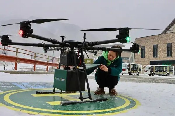 “郵件裝載完畢,已完成起飛前檢查,可以正常起飛!” 隨著指令下達(dá),這架搭載著快遞與報(bào)刊的“空中快遞員”騰空而起,沿云控3D航線向7公里外的冬奧村疾馳而去。14分鐘后,無(wú)人機(jī)精準(zhǔn)降落,在皚皚白雪中為山區(qū)打通了高效便捷的“空中郵路”。