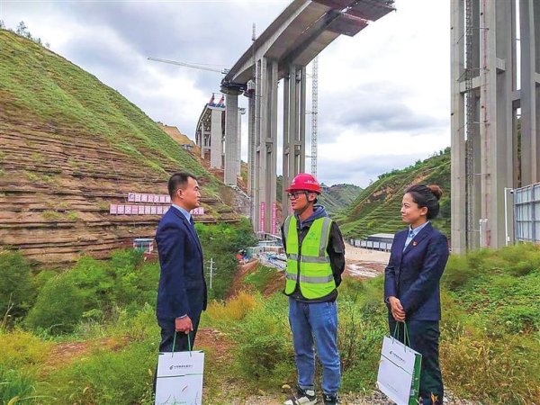 郵儲銀行平涼市分行工作人員在高速公路施工現場走訪。