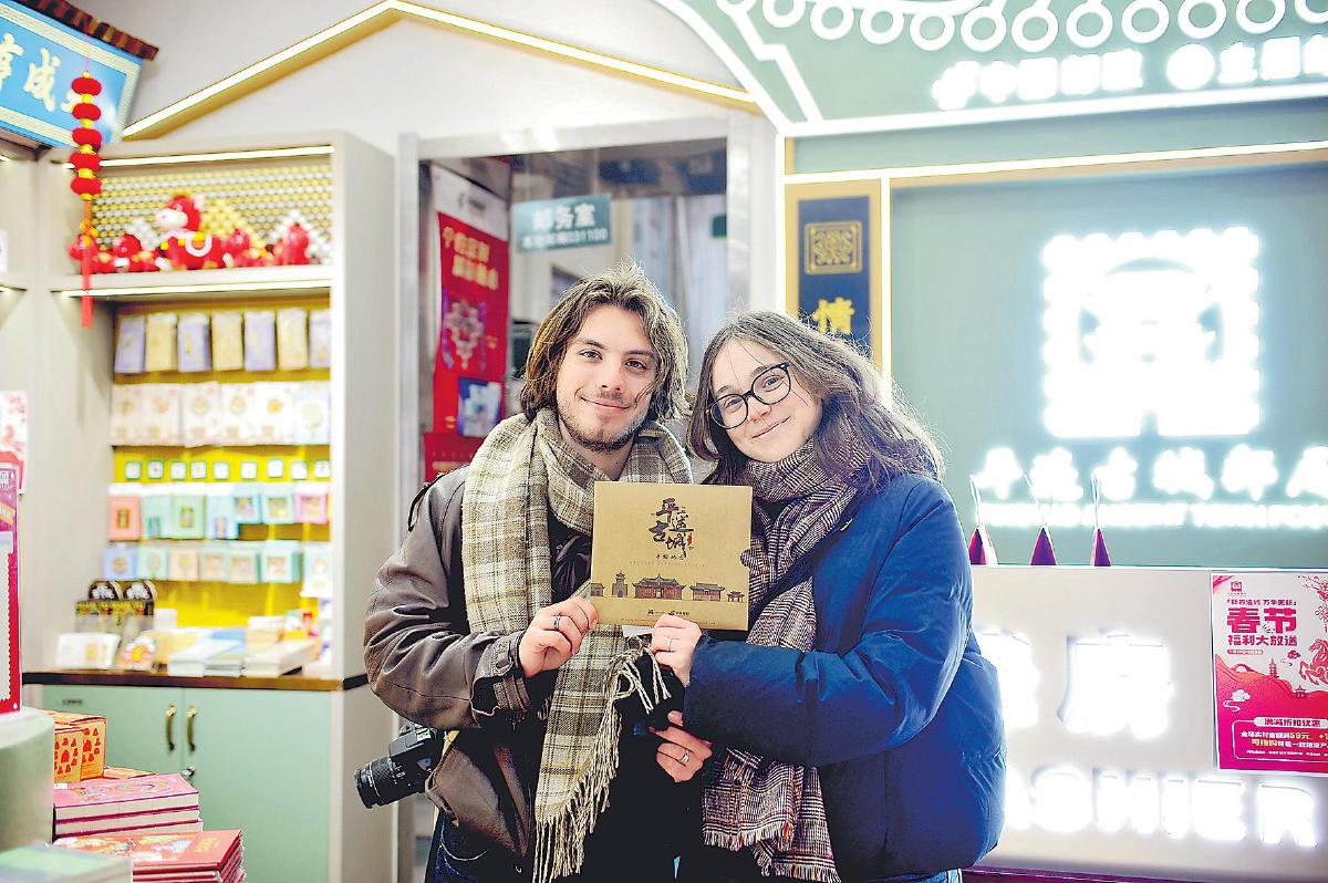 數據顯示,今年來中國過春節的外國人比往年多了很多,他們不再只關注北上廣深等一線城市,而更愿意走進平遙這樣的古城,感受地道的中國年味兒。卡洛特和朋友們挑選了很多古城明信片,她們要把這些帶著中國年味兒的明信片帶回去,讓更多法國人看看真實的中國。“不只是高樓大廈,還有這樣有溫度、有歷史的古城。”
