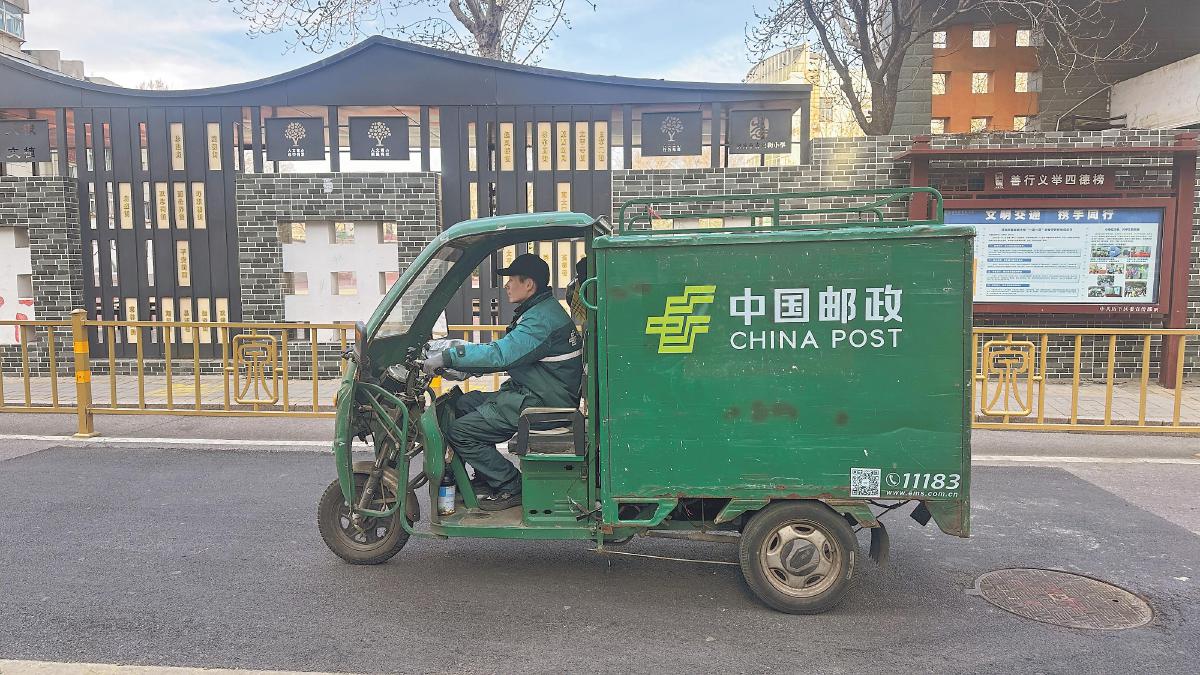 上午9點,投遞員王宇跨上三輪車,駛入他再熟悉不過的青后小區?!靶⊥酰】靵韼臀覓煲幌逻@副春聯!”才剛進小區,社區超市的李大娘就笑盈盈地招呼起來。王宇利索地停好車,踩著凳子幫李大娘把春聯貼得板板正正。
